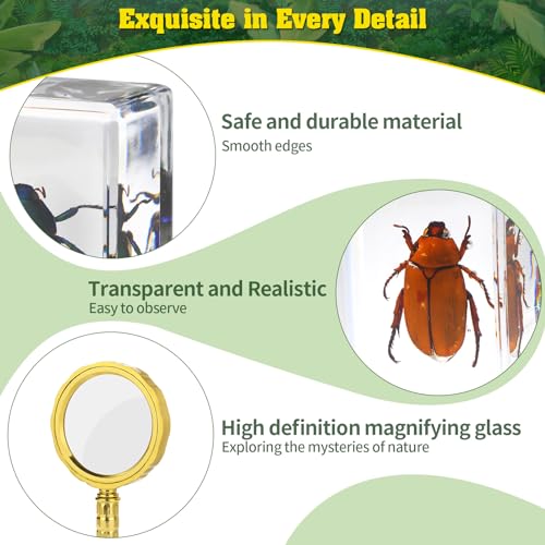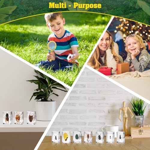 15 lifelike resin specimens, perfect for scientific research and multi scene decoration. The animal specimens are framed with transparent resin, with smooth edges and clear materials, making it easy for children to observe under a magnifying glass and providing a better learning channel. In addition to being used as a learning tool, it can also be used to decorate tables, offices, classrooms, etc. It can also be given as a surprising gift to children.