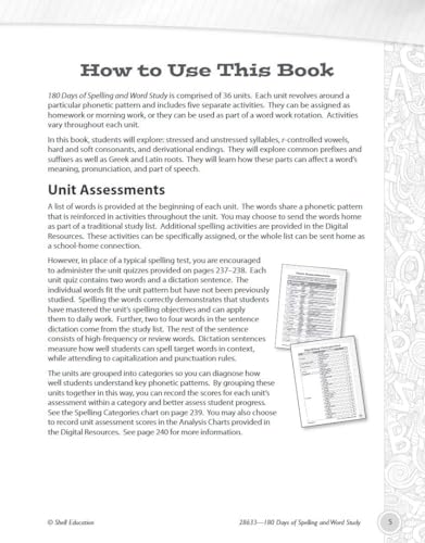 180 Days™ of Spelling and Word Study for 5th Grade Workbook Features: