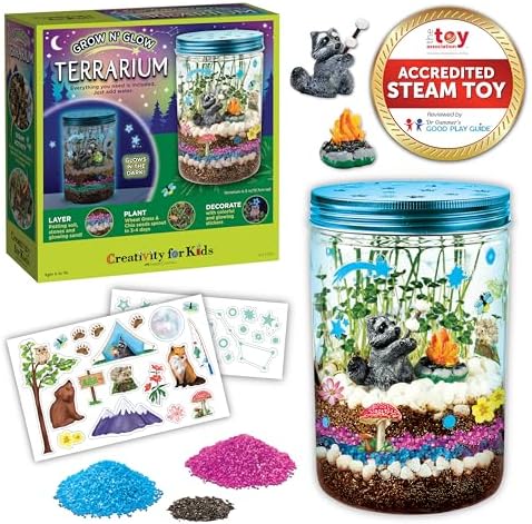 KIDS GIFTS: Give the gift of creativity! Grow ‘N Glow Terrarium is the perfect 7 year old boy and girl gift for kids who love science and working with their hands! Have fun while building creative confidence! Since 1976, Creativity for Kids has proudly made fun and creative experiences today to nurture children’s confidence for life. This science kit features kid friendly arts and craft supplies and is recommended for ages 6-8+