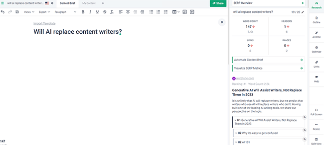 In addition to helping you edit the content that you’ve written, Frase AI can also help create SEO optimized content completely from scratch.