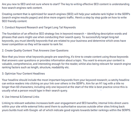 I was pretty impressed with this. It’s a convincingly-written how-to post that answers the question accurately and concisely. The formatting is pretty standard, with listicle-style numbered headlines for each step in the process. And there are little to no grammatical or spelling errors.