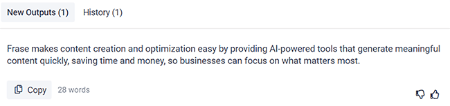 After clicking Generate, this is the output Frase came back with: