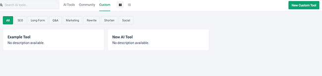 But to give you an idea of how the AI writer works, let’s try out a couple of them: a long-form template and a short-form template.