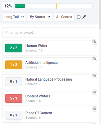 The yellow line on the bar shows you the average score of your top competitors. If you can get your content to score higher than that line, you should, in theory, stand a pretty good chance of ranking.