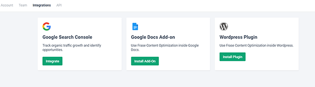 Aside from Google Search Console, Frase also integrates with Google Docs and WordPress.