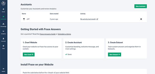 Frase Answers lets you build your own custom chatbot (or Answer Assistant) and install it on your website for visitors to use.