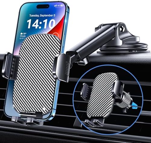 3 in 1 Car phone holder: Cell Phone Holder Car is equipped with military-grade suction and upgraded vent clip, which provide you with the freedom to mount it on the windshield, dashboard, and air vents. It is suitable for all types of cars, including pickup trucks, SUVs, trucks, and taxis and more.
