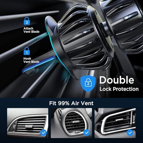 UPGRADE HOOK CLIP:The “hook shape” of this car phone holder mount creates “three gripping places” that firmly grasp the air outlet blades. Even when driving on uneven roads, it won’t come off. The car mobile phone holder was created for innovation and usefulness, and it addresses the market’s common issue of easy slipping off.