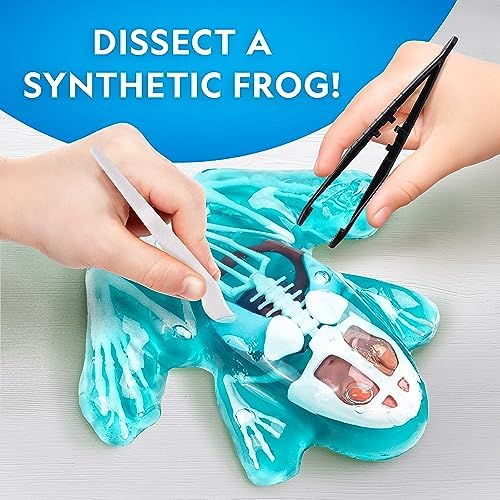 DISSECT A SYNTHETIC FROG – This kit is a safe and humane alternative to dissecting a real frog! The glow-in-the-dark bones and realistic organs are encased in a safe, odor-free gel. Kids use the included tools to extract each piece to study closer.