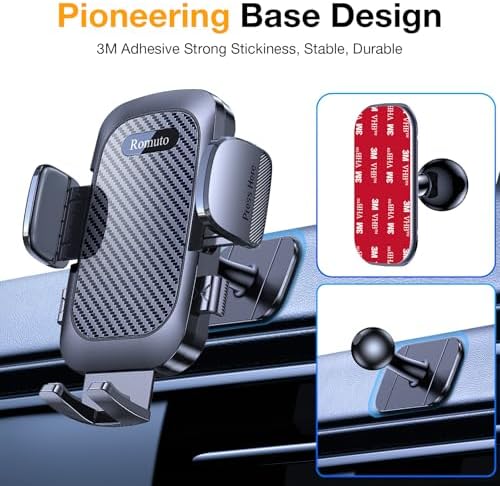 Romuto Ultimate Solution= Ultra Adhesive Base + Super Suction Cup + Steel Hook Vent Clip; Phone Mount for Car Dashboard / Windshield / Vent